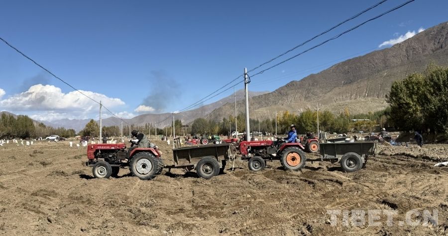 图为南木林县艾玛乡山坝村村民使用机械收获土豆。